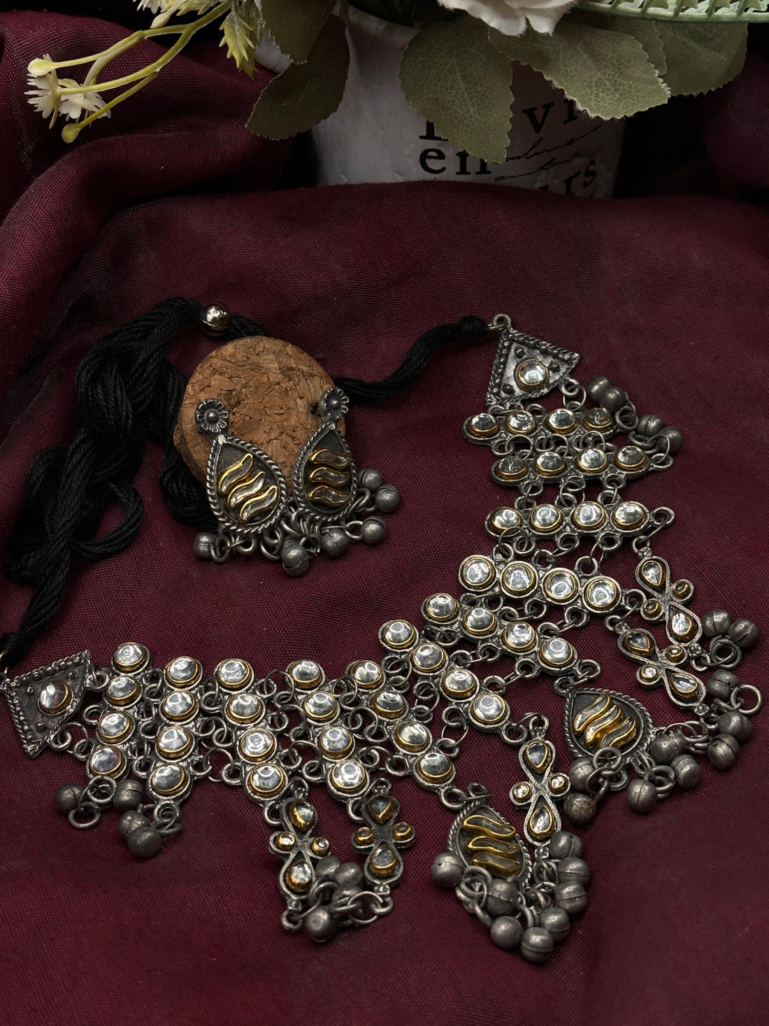 Oxidized Silver Choker Set Experience the unique allure of traditional Indian oxidized jewelry with this...