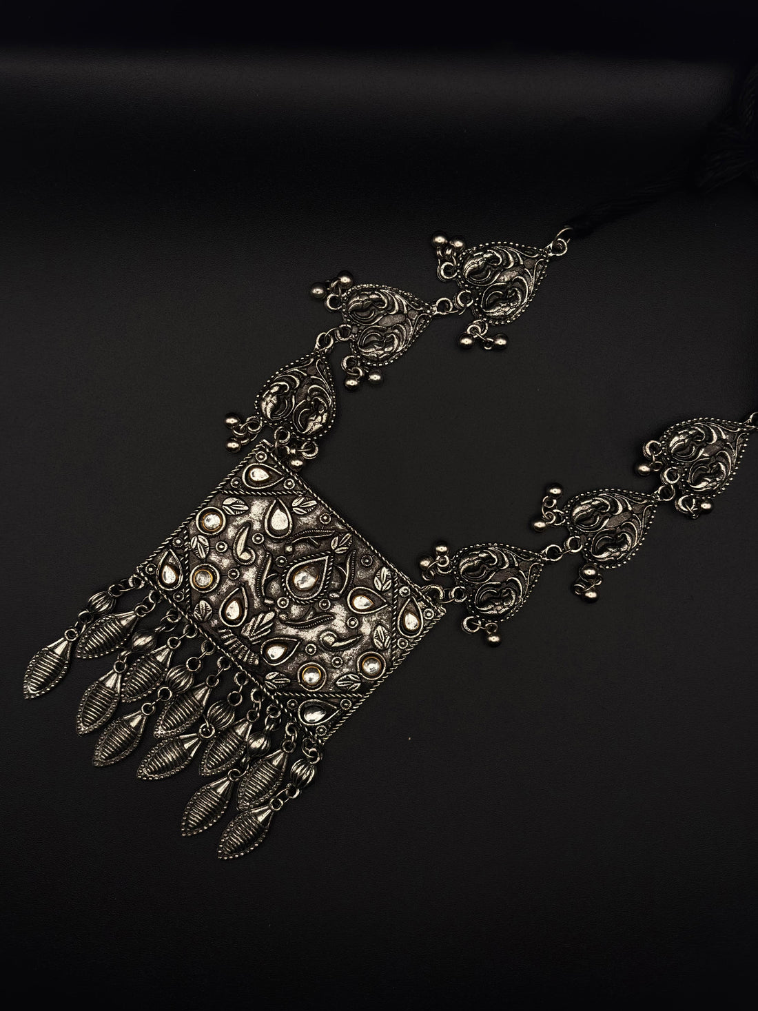 Product Category: Indian Oxidized Jewelry Includes: Choker with Earrings Dori: Adjustable Black Dori Tarnished Effect:...