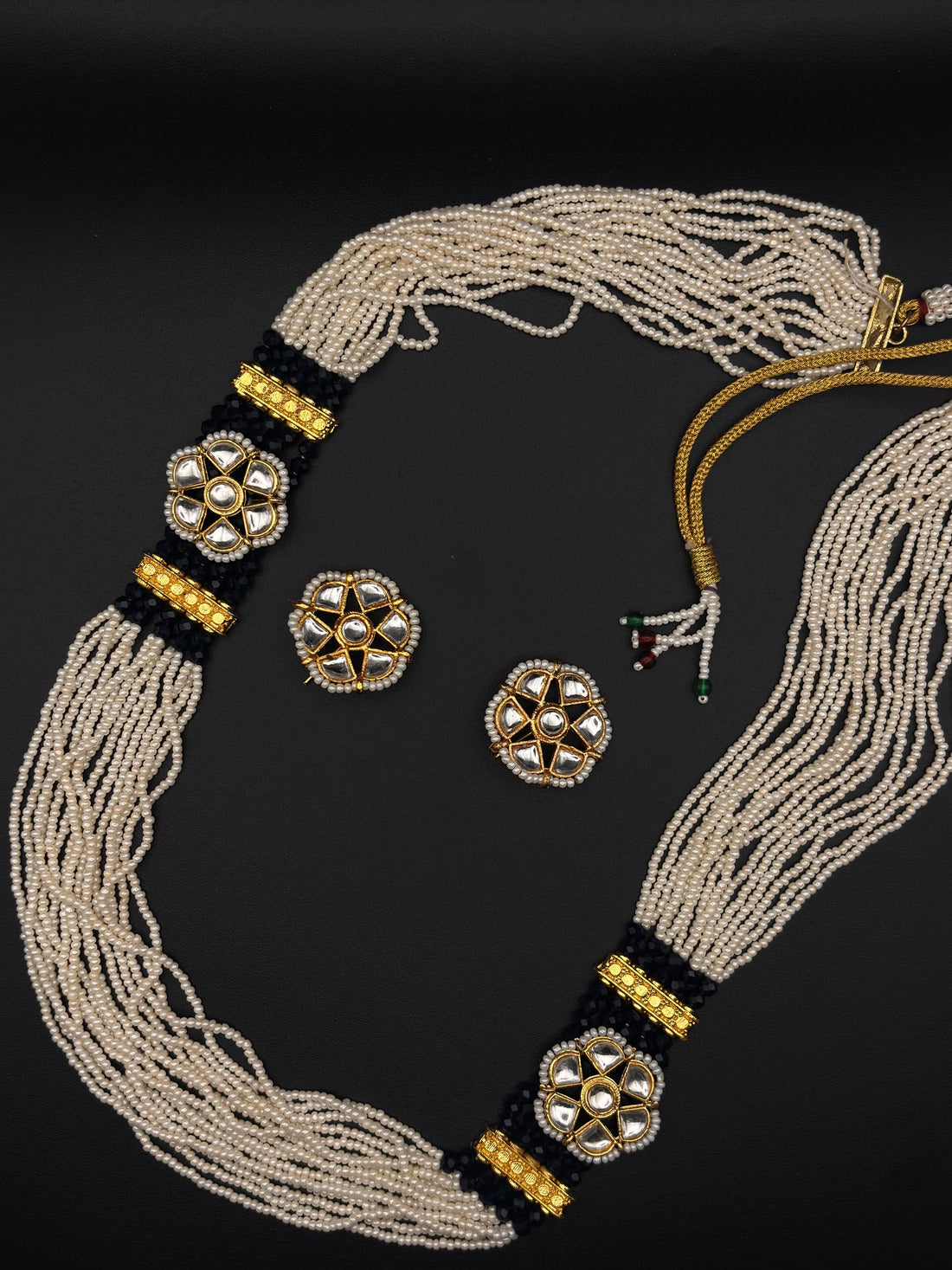 The Heer Look is a celebration of sophisticated charm and traditional allure, beautifully crafted to captivate attention. This ensemble features an intricately designed oxidized necklace adorned with emerald-green accents, evoking a sense of regal elegance. The delicate detailing on the necklace exudes cultural richness, while the silver craftsmanship lends it a contemporary edge. The statement ring, designed to complement the necklace, boasts a floral motif with intricate etching and a central turquoise gem, symbolizing grace and individuality. Together, the jewelry creates a harmonious blend of classic artistry and modern aesthetics.