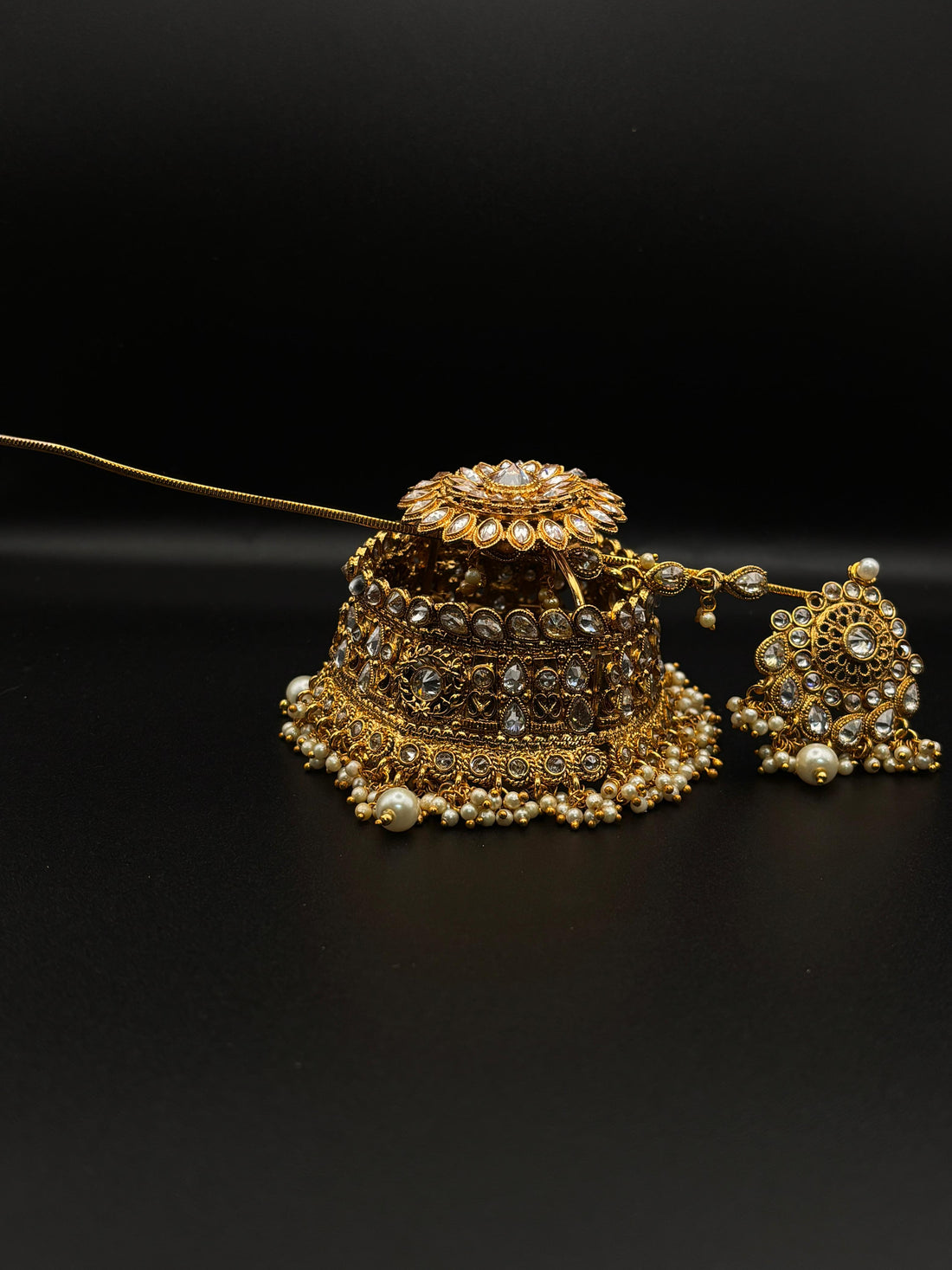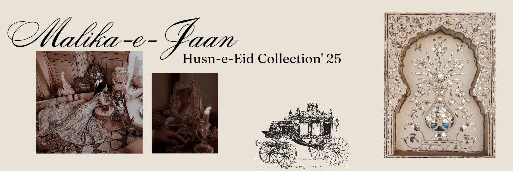 Introducing 'Malika e Jaan - Husn e Eid Collection'25', a captivating blend of Indian heritage and Mughal grandeur, designed exclusively for the opulence of Eid celebrations. This stunning jewelry line showcases an array of intricate pieces inspired by the timeless beauty of Mughal artistry, adorned with modern embellishments that exude elegance and sophistication.