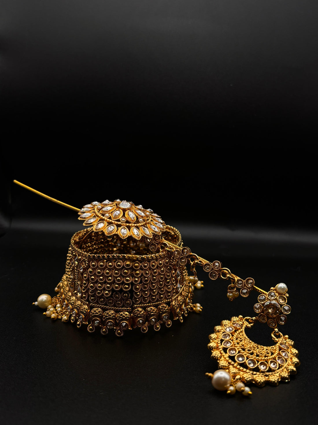 Turn every moment into royalty with our Regal Pearl & Kundan Bridal Set, a timeless...