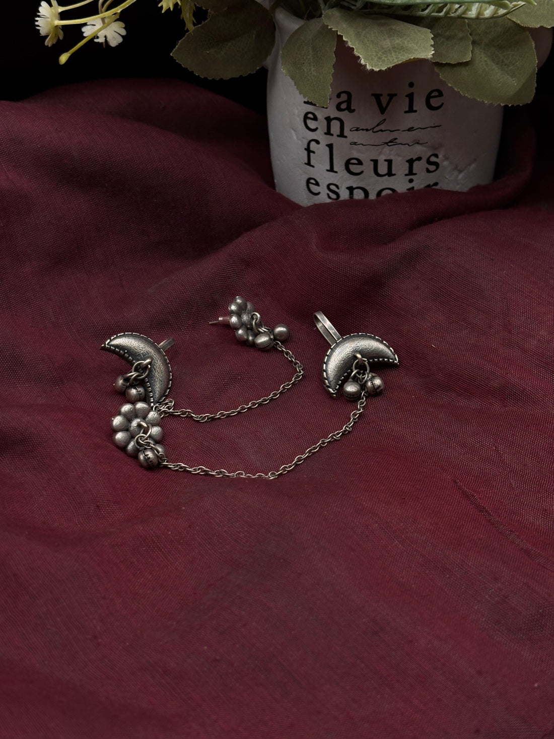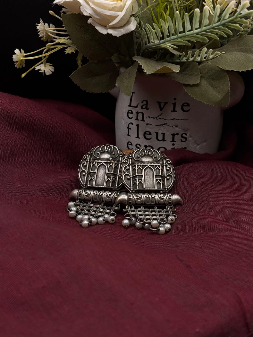 Product Category: Indian Oxidized Jewelry Includes: Earrings Tarnished Effect: Yes Note: A piece of blackened...
