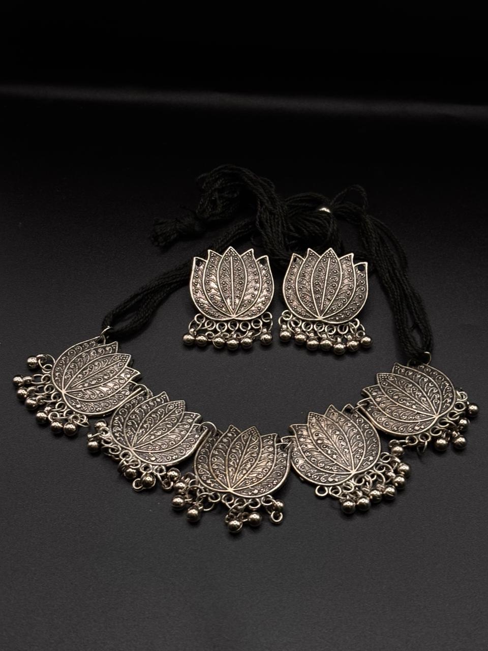 Oxidized Silver Necklace Set Experience the unique allure of traditional Indian oxidized jewelry with this...