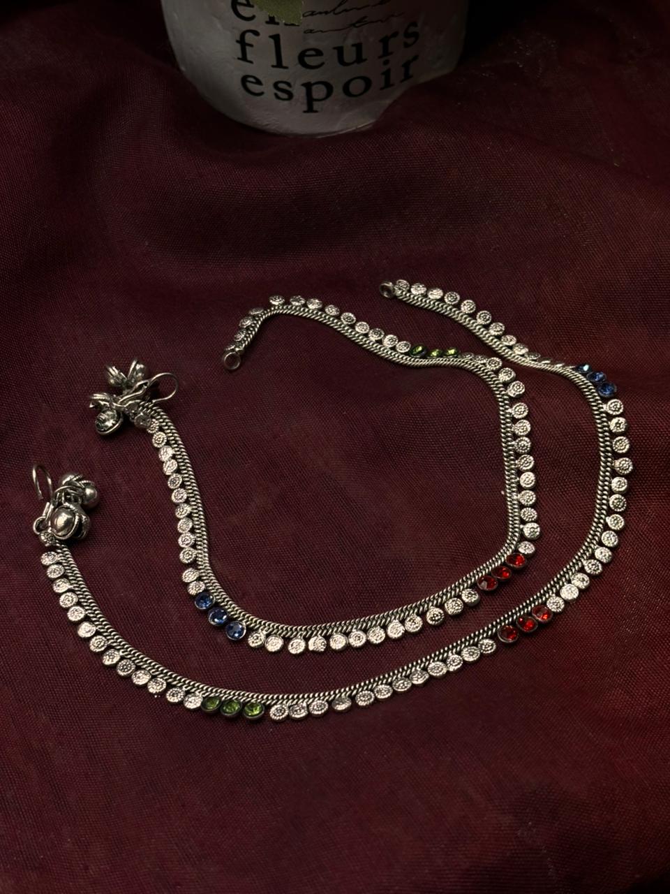 Adorn your ankles with the classic beauty of our Oxidized Silver Payal , a piece that exudes traditional charm and artisanal craftsmanship. This payal (anklet) is perfect for adding a subtle yet captivating touch to any attire, from festive outfits to casual wear.