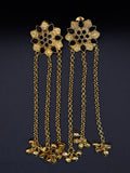 From the base of the floral stud, long cascading gold chains extend downward, ending with clusters of tiny ghungroo (bell) beads. The chains create graceful movement while the ghungroo bells produce a soft, festive jingle with every step.