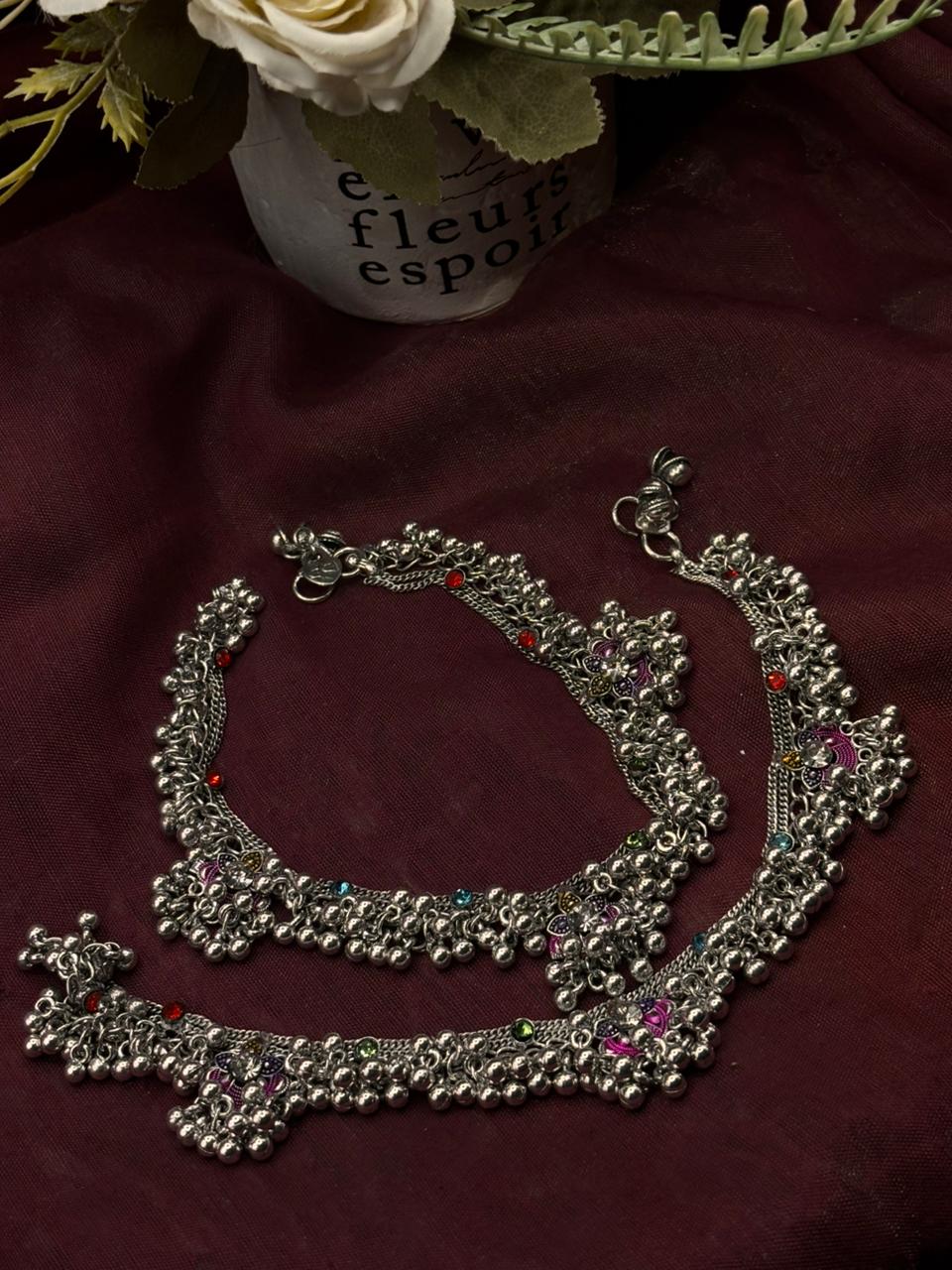 Adorn your ankles with the classic beauty of our Oxidized Silver Payal , a piece that exudes traditional charm and artisanal craftsmanship. This payal (anklet) is perfect for adding a subtle yet captivating touch to any attire, from festive outfits to casual wear.