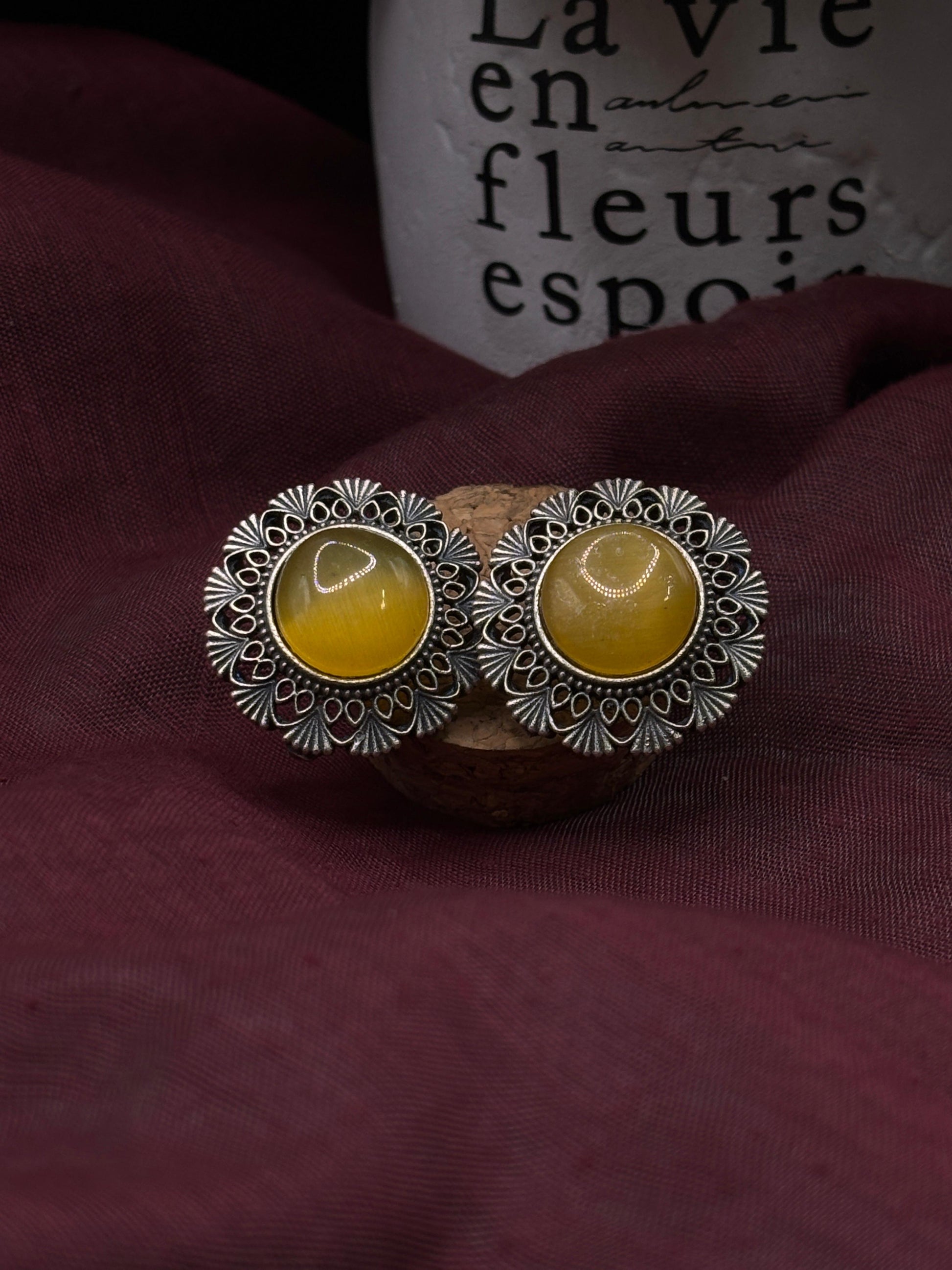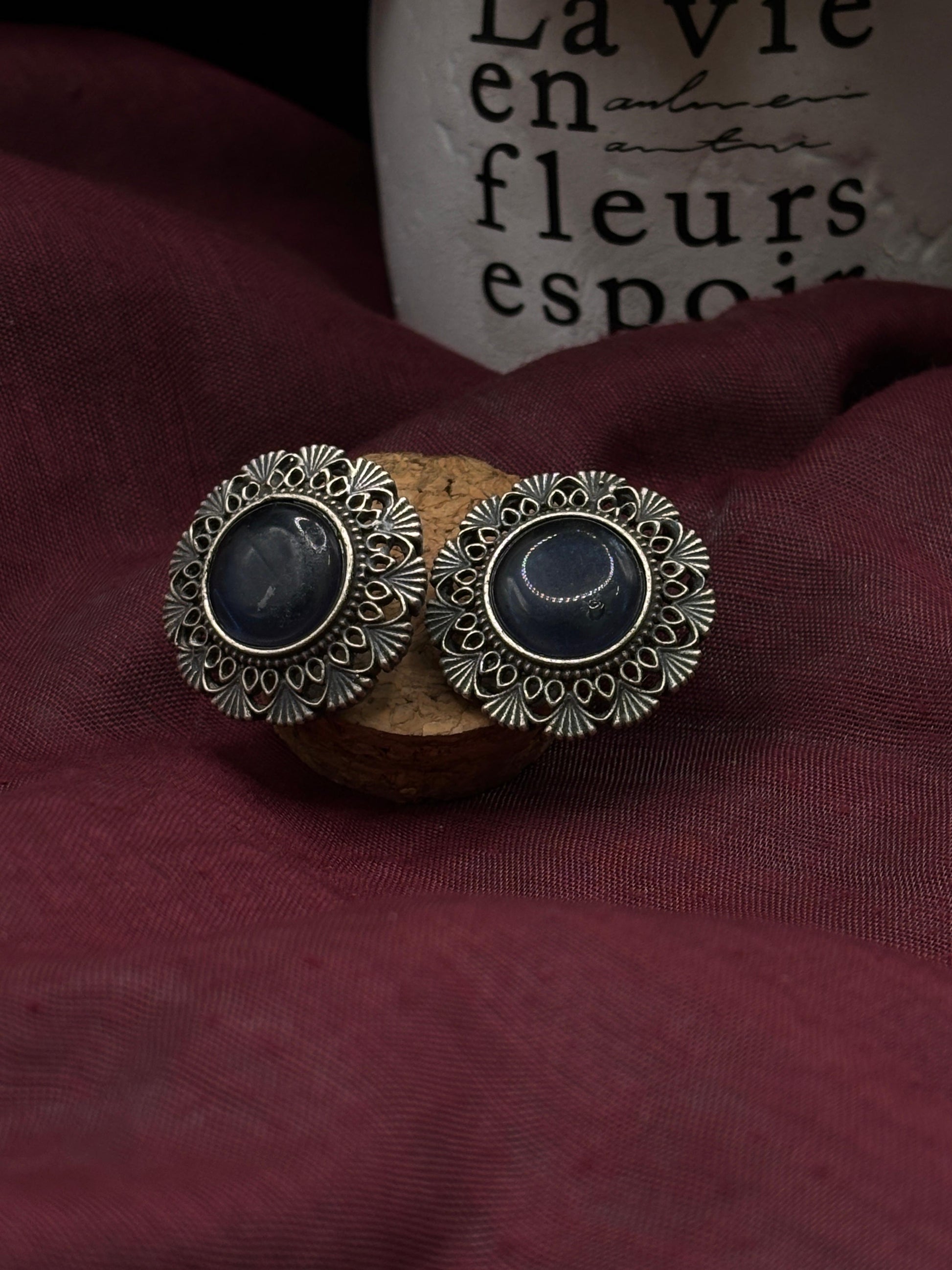 Crafted from german silver , these earrings are specially treated to achieve a unique darkened surface using liver of sulfur, a chemical process that adds depth and character to the metal. This oxidized finish highlights each detail, giving the earrings a vintage-inspired patina that enhances their artistic appeal.