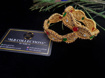 Note: From our very own customized Collection of Kara. Embedded with Mesmerizing Semi-Precious Stones. Gold Plated to give a Luscious and Luxurious look. Carefully detailed with fine Quality stones Truely a Divine piece of Handwork.