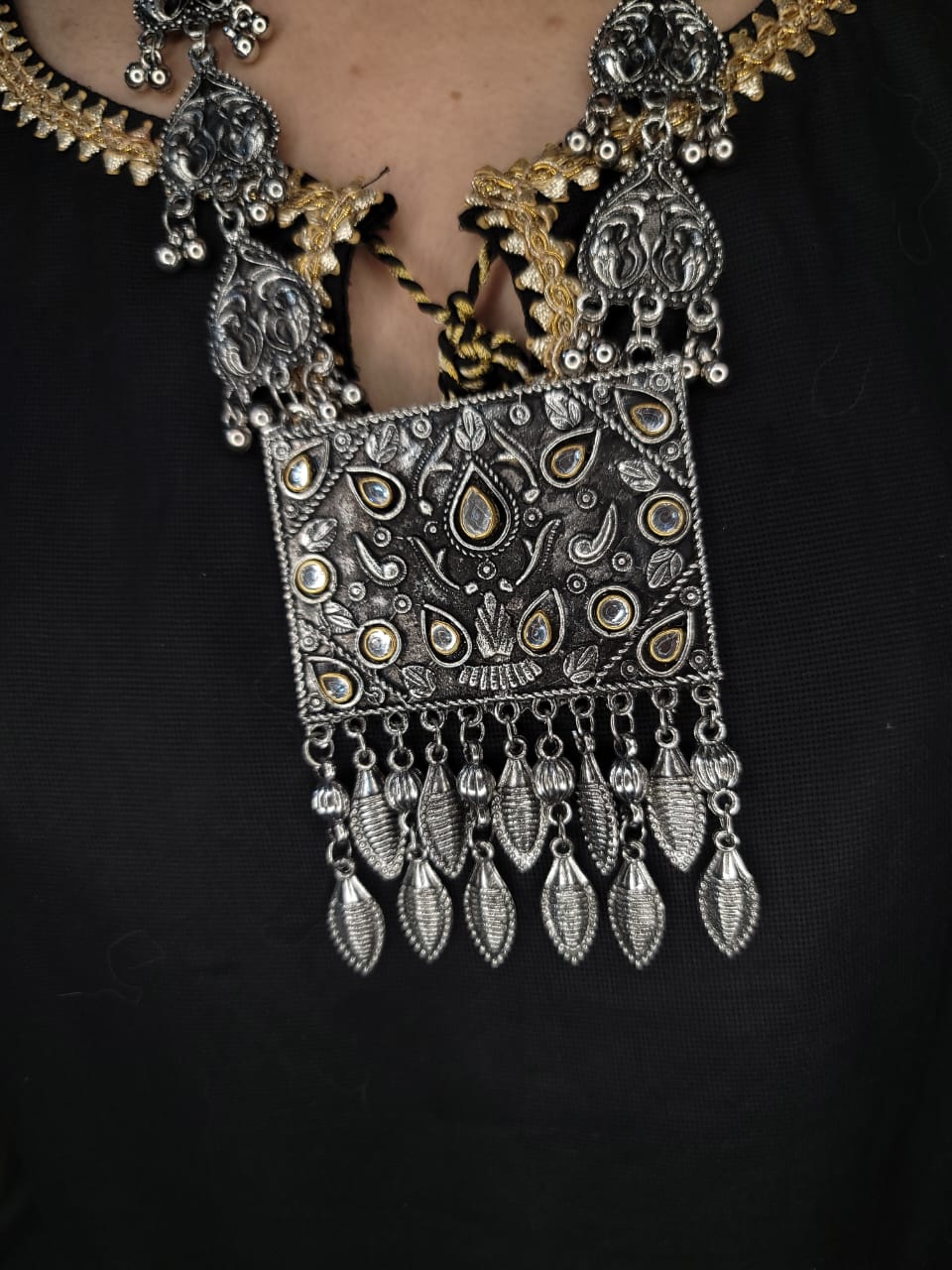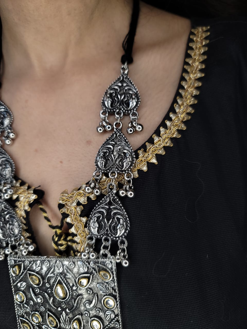 - Oxidized Jewelry – Pure Silver Metal: Our oxidized jewelry pieces are crafted from pure silver, which undergoes a special oxidation process. This creates a unique darkened or "antiqued" finish that gives the jewelry a vintage, artisanal look. Pure silver is chosen for oxidized pieces due to its responsiveness to the tarnishing process, allowing for a beautiful patina over time.