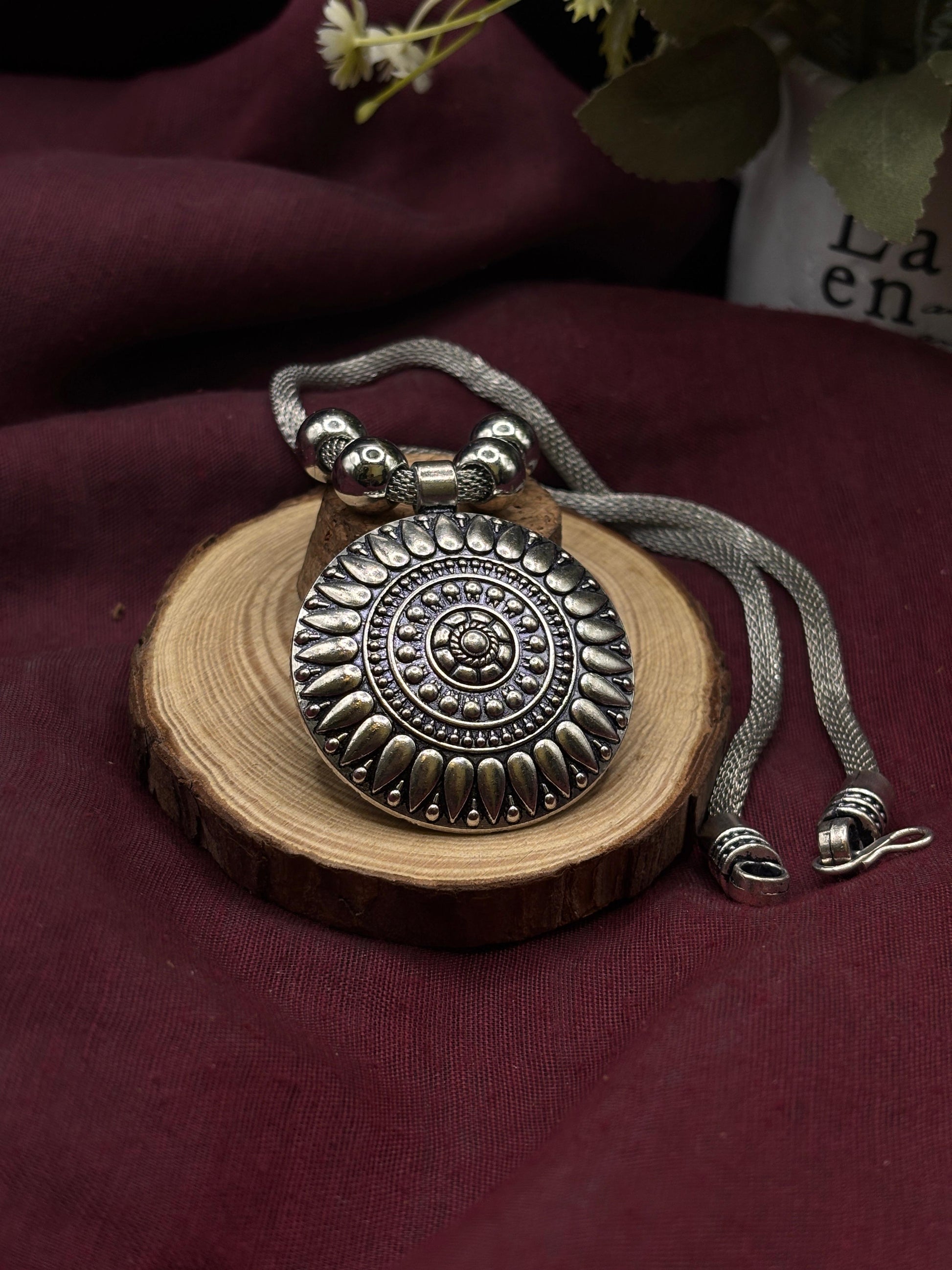 Expertly crafted from true german silver , this is intentionally darkened through a chemical process using liver of sulfur. This carefully applied oxidized finish gives the jewelry a beautiful tarnished effect, adding depth and character to its design. Each bead and intricate detail of the mala reflects the artistry and heritage of Indian jewelry, making it a cherished piece for those who appreciate cultural elegance.