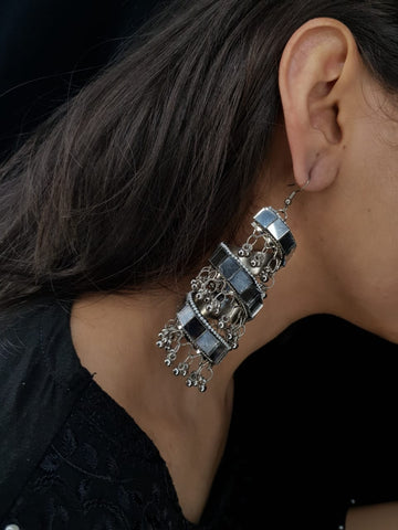 Note: A piece of blackened or oxidized silver is true german silver , but it's surface has been intentionally darkened through by introducing it to a chemical process. We jewelers use a chemical compound such as liver of sulphur, a potassium sulfide, to create the blackened surface on silver jewelry. Mirror Jewelry can have rough mirror cuts/edges. Mirrors will not be equal in shapes and sizes.