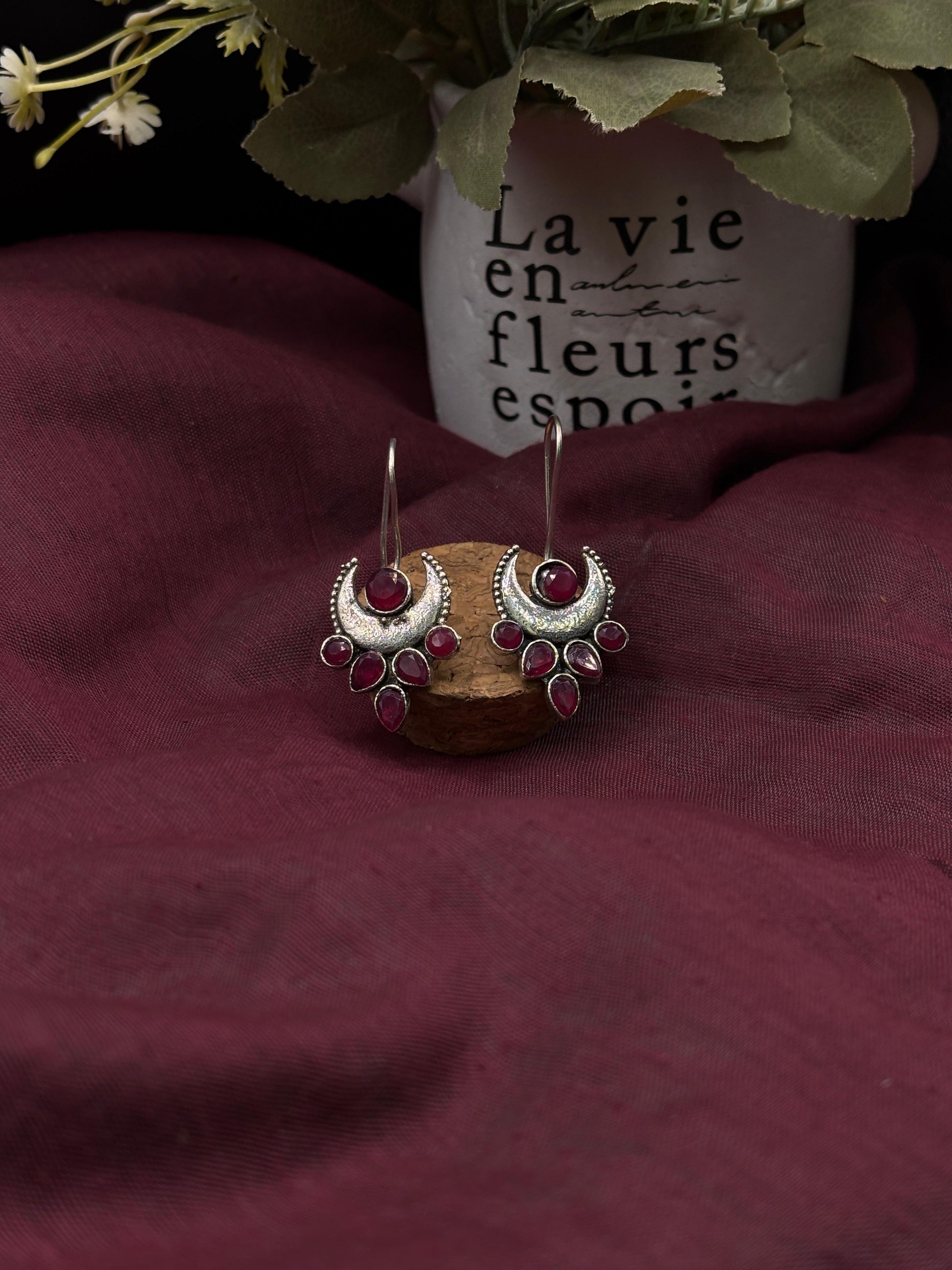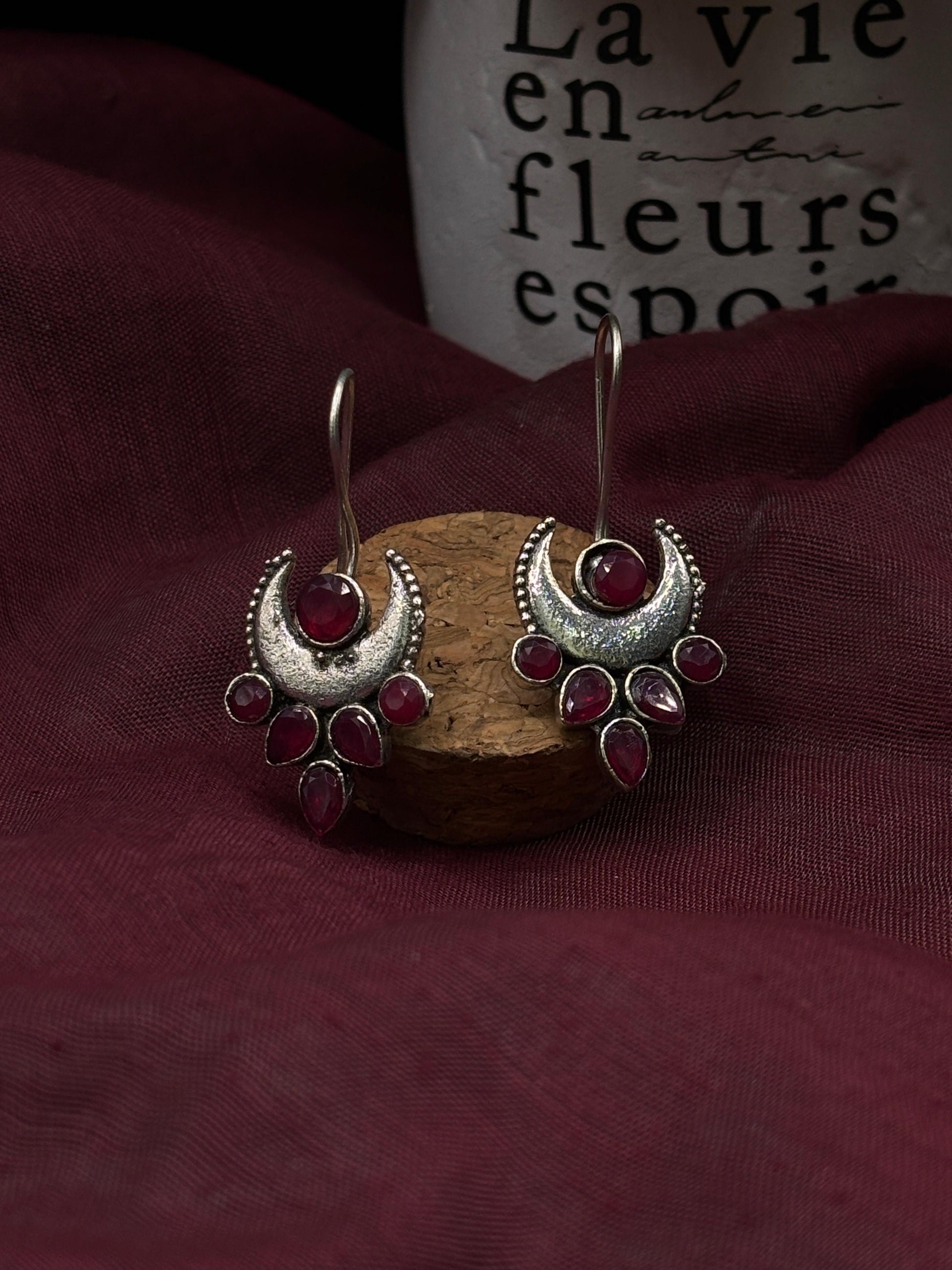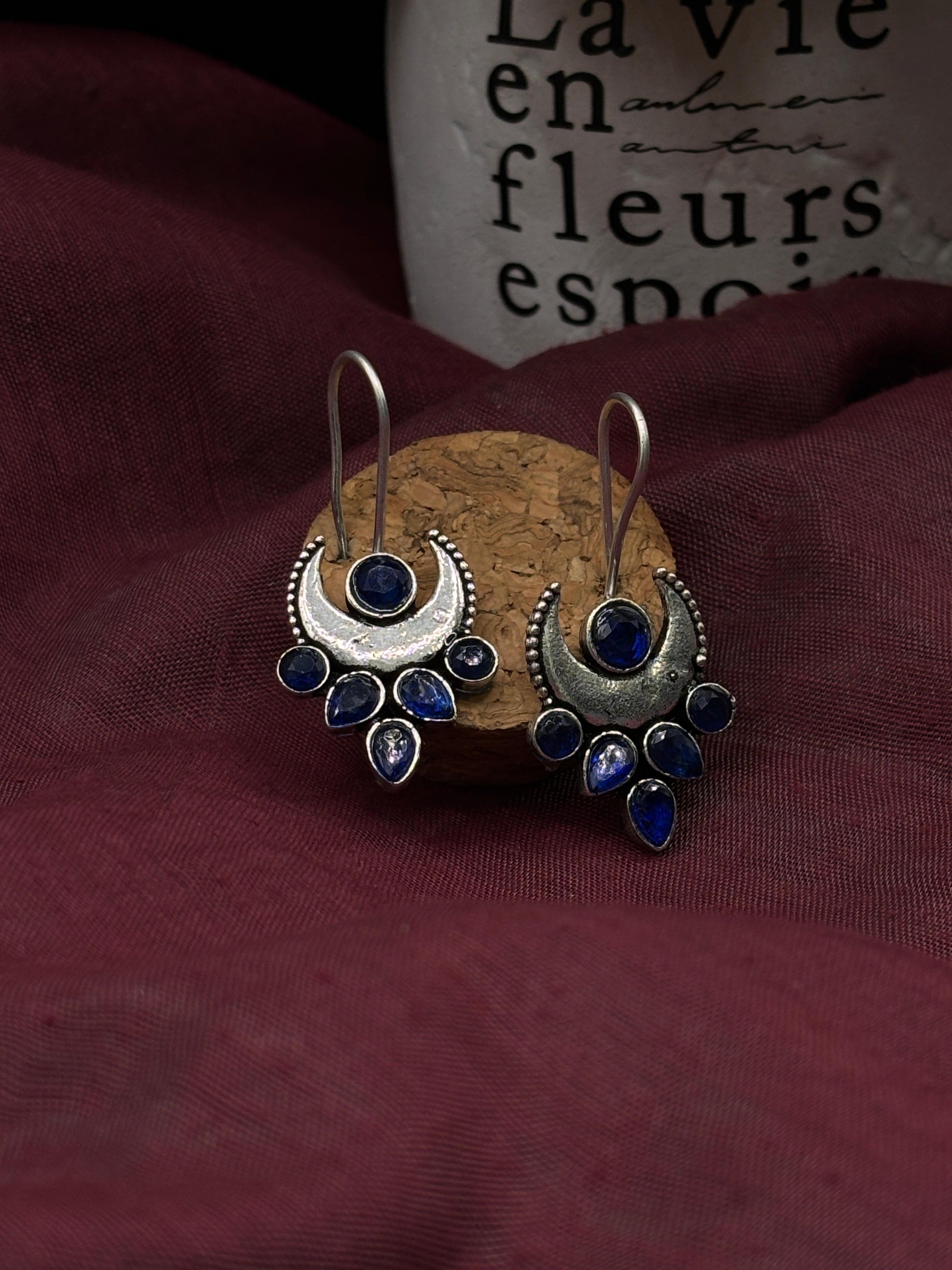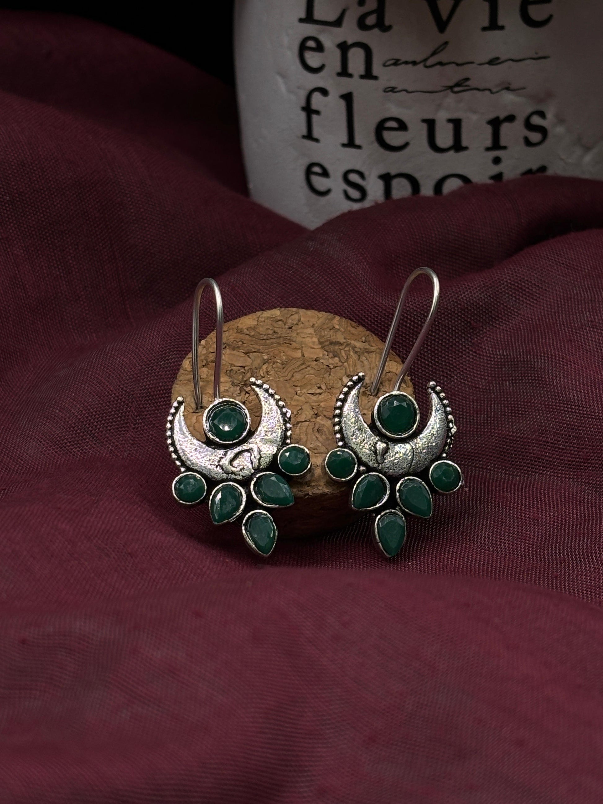 Crafted from german silver , these earrings are specially treated to achieve a unique darkened surface using liver of sulfur, a chemical process that adds depth and character to the metal. This oxidized finish highlights each detail, giving the earrings a vintage-inspired patina that enhances their artistic appeal.