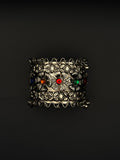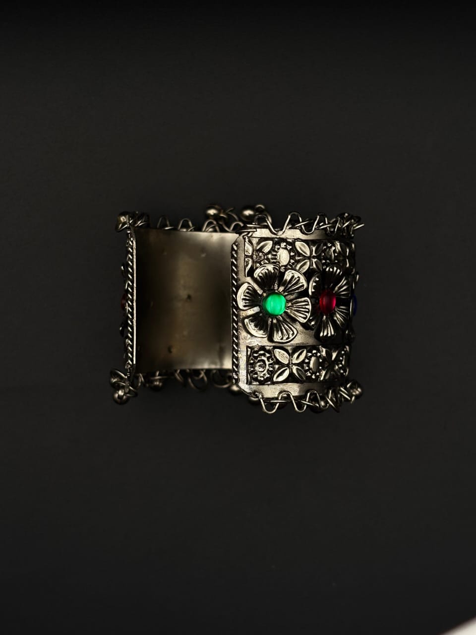 Elevate your accessory collection with this Oxidized Kara, a stunning fusion of bold design and vintage elegance. Crafted from high-quality oxidized metal, this kara features intricate engravings and sharp spike embellishments, making it a perfect statement piece for those who love edgy yet traditional jewelry.