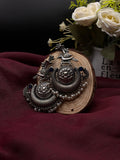 Crafted from german silver , these earrings are specially treated to achieve a unique darkened surface using liver of sulfur, a chemical process that adds depth and character to the metal. This oxidized finish highlights each detail, giving the earrings a vintage-inspired patina that enhances their artistic appeal.