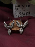 Crafted from german silver , these earrings are specially treated to achieve a unique darkened surface using liver of sulfur, a chemical process that adds depth and character to the metal. This oxidized finish highlights each detail, giving the earrings a vintage-inspired patina that enhances their artistic appeal.
