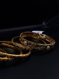Step into timeless elegance with this Regal Gold-Plated Bangles Set, crafted to exude royal charm and cultural sophistication. Designed with intricate detailing and adorned with multi-colored stones, each bangle reflects the essence of traditional craftsmanship fused with a touch of modern glamour — perfect for weddings, festive celebrations, and special occasions.