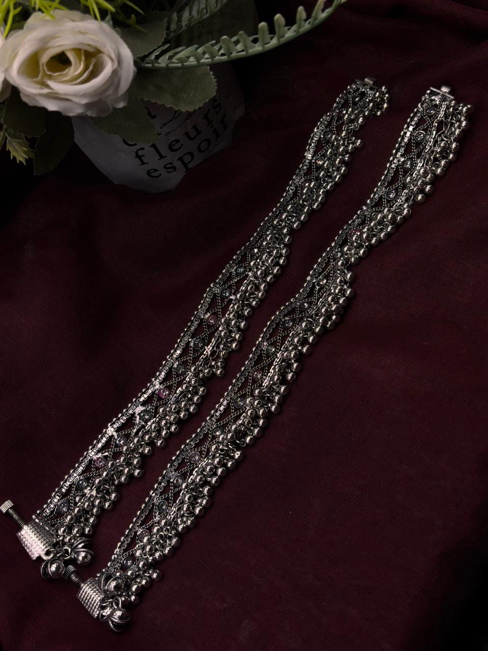Adorn your ankles with the classic beauty of our Oxidized Silver Payal , a piece that exudes traditional charm and artisanal craftsmanship. This payal (anklet) is perfect for adding a subtle yet captivating touch to any attire, from festive outfits to casual wear.