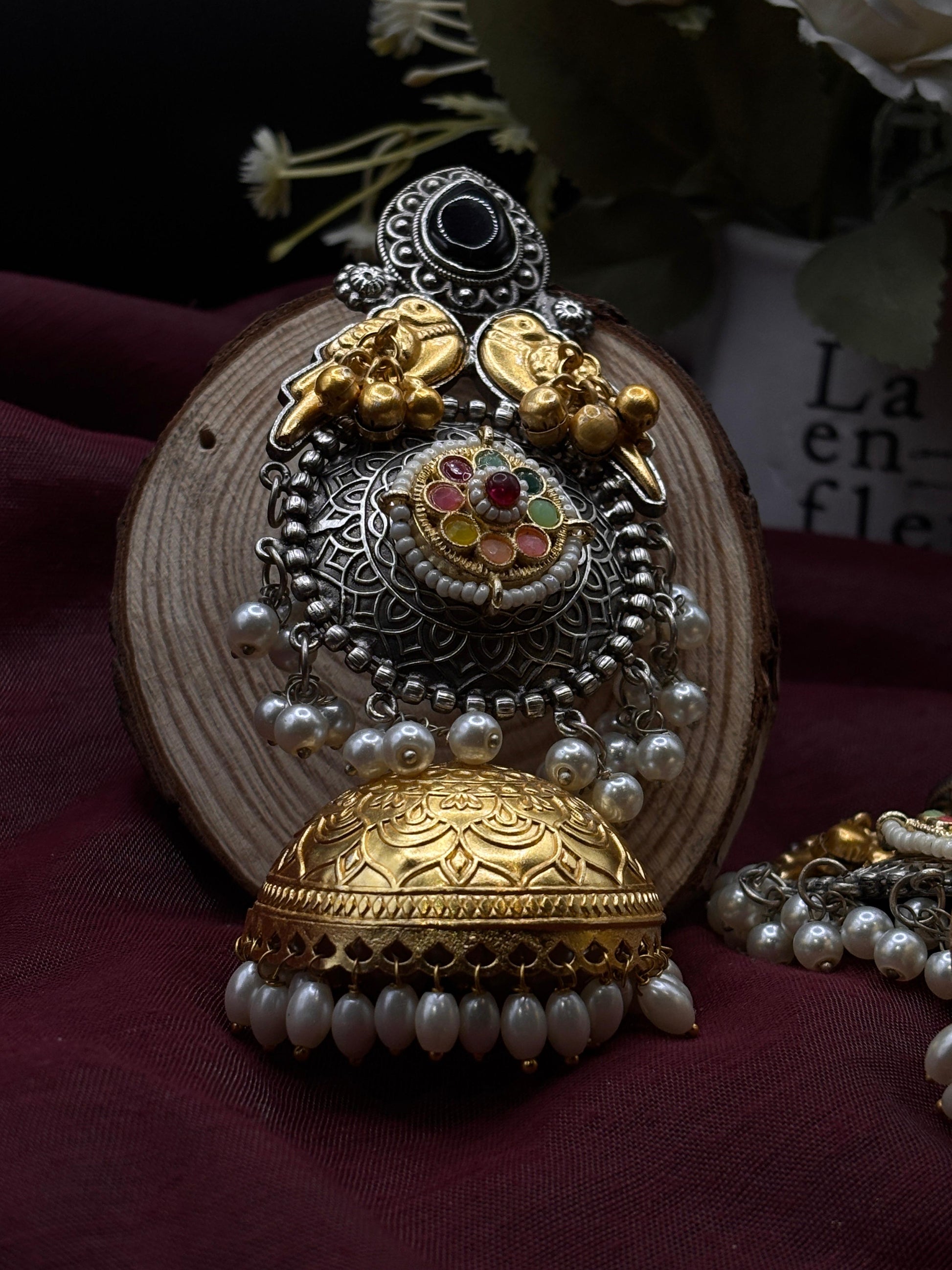 Enhance your style with our Oxidized Silver Earrings, designed to bring out the beauty of traditional Indian jewelry with a touch of modern elegance. These earrings, with their intricate detailing and tarnished finish, are perfect for adding sophistication and cultural charm to any outfit.