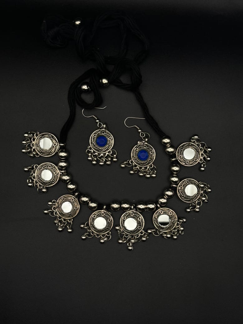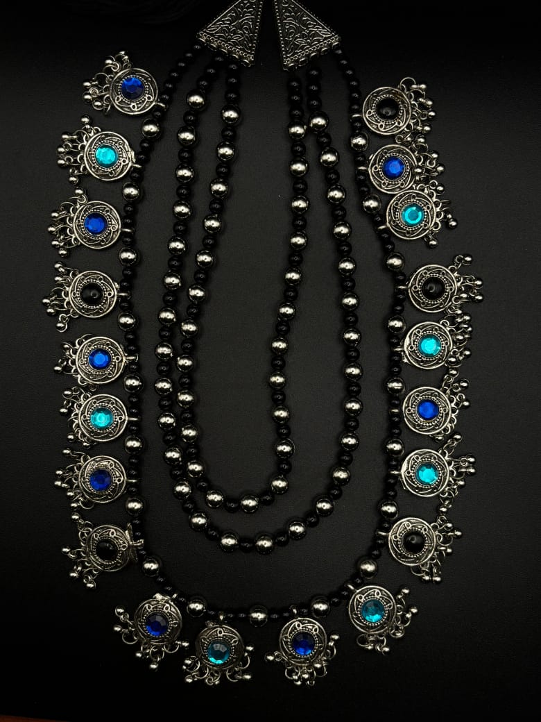 Experience the unique allure of traditional Indian oxidized jewelry with this striking Oxidized Silver Mala Set, designed to add a touch of cultural elegance to any look. This exquisite jewelry set is crafted to showcase the timeless beauty of oxidized silver, making it an ideal choice for those who appreciate classic charm and intricate detailing.